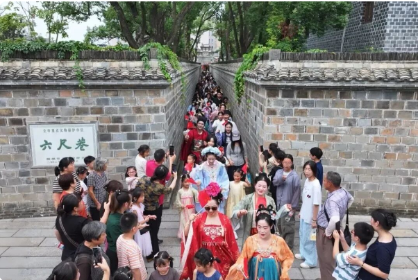 芜湖天门山景区举办“天门山杯”诗词大会,4万游客通过飞花令大赛、汉服游园会、书画写生、文创互动等活动,邂逅李白笔下的《望天门山》。