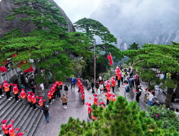 大批游客在黄山之巅同唱《我的中国心》、在桐城六尺巷感悟谦和礼让的家风。