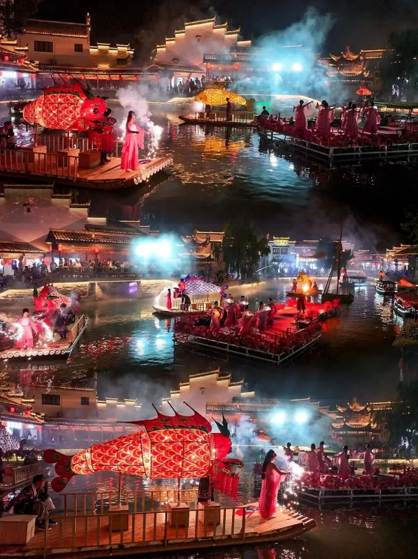 犁桥水镇从黄梅戏演出到马头墙上数字光影展现,再到传承千年的打铁花表演,让游客赞叹“就像是真的走进了千年铜都的梦里”,接待17.4万人次。