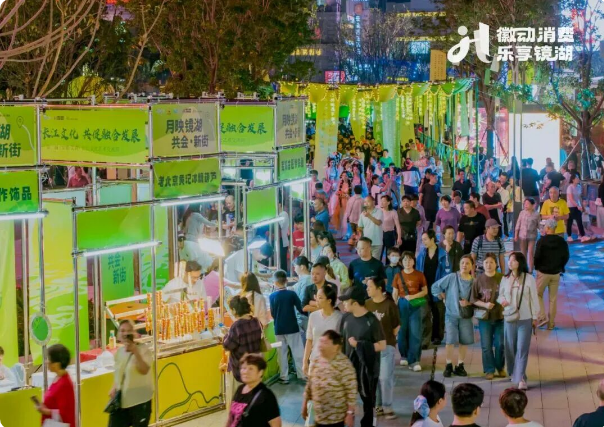 焕新开放的芜湖中山路步行街以“街区+盒子+公园”新形态与“湖街一体”景观,融合长江文化艺术周、国风市集、非遗展等,引流超100万人次。