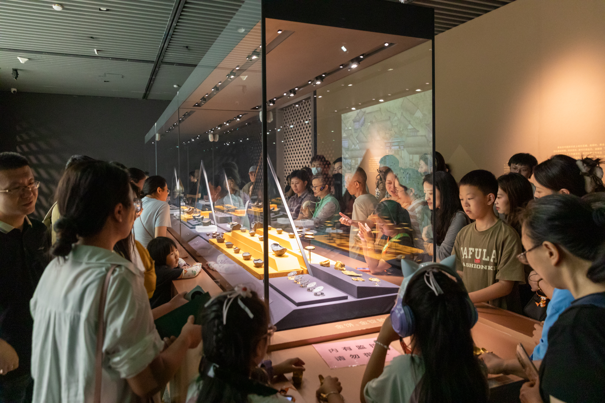 特展引领观展热潮,多元展览满足需求。“金耀九州——中国古代金银器的文明印记”特展接待观众1.68万人次,展厅内每日上演 “人从众” 盛况,流光溢彩的金银器实属假期顶流。“大漆——江南漆器艺术与传承”圆满收官,观众跟随漆界“大咖们”开启了一场大漆的艺术生命之旅。“安徽文明史陈列——夏商周时期的安徽”人气依旧,铸客大鼎、云纹铜五柱器等重量级文物前总是簇拥着驻足的观众。庐阳馆“热力全开”,通过“潘玉良艺术展”“文脉——桐城派主题文物展”“会飞的‘花朵’——蝴蝶主题科普展”“烽火画卷——宣传画中的安徽抗战记忆”等一系列主题各异、内容丰富的展览,满足了不同年龄段观众的多元化观展需求。