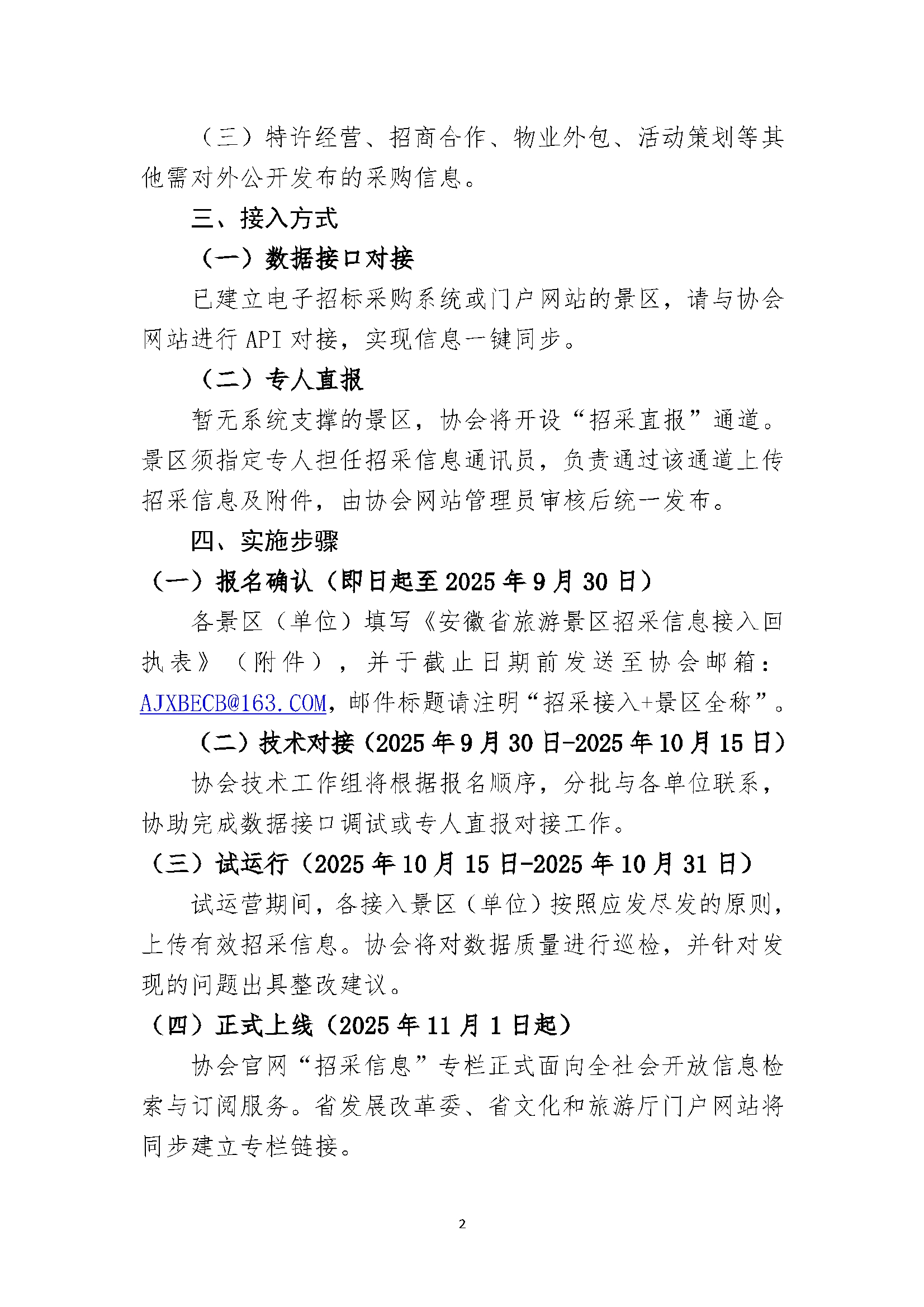 关于推进全省旅游景区招标采购信息与安徽省旅游景区协会官网互联互通的通知