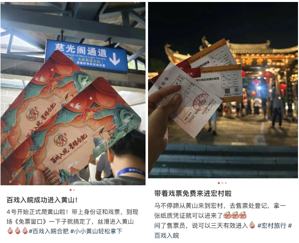 “百戏入皖”的一张戏票便是开启皖山皖水的“钥匙”,观众凭票可免费游览40余家景区并享受食宿优惠。