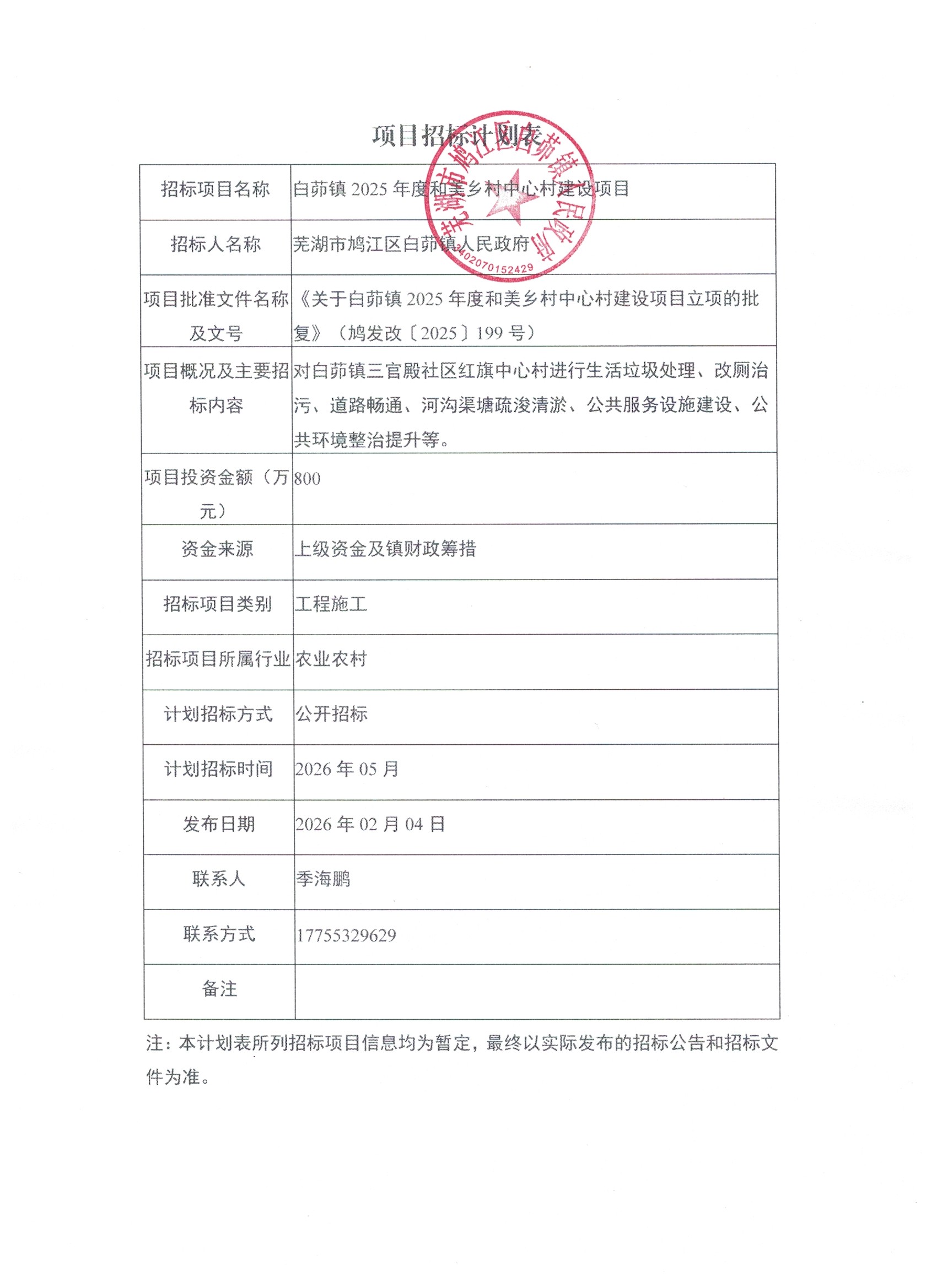注:本计划表所列招标项目信息均为暂定,最终以实际发布的招标公告和招标文件为准。